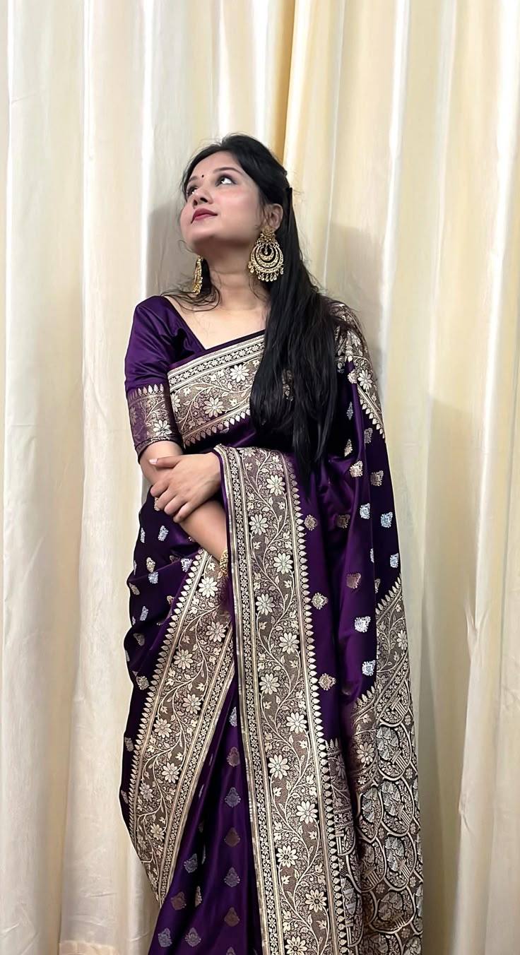• Bold and beautiful, this Kanchipuram KING & QUEEN ATTRACTIVE silk Royal Bottle Purple color brocade saree is all about impactful presence.